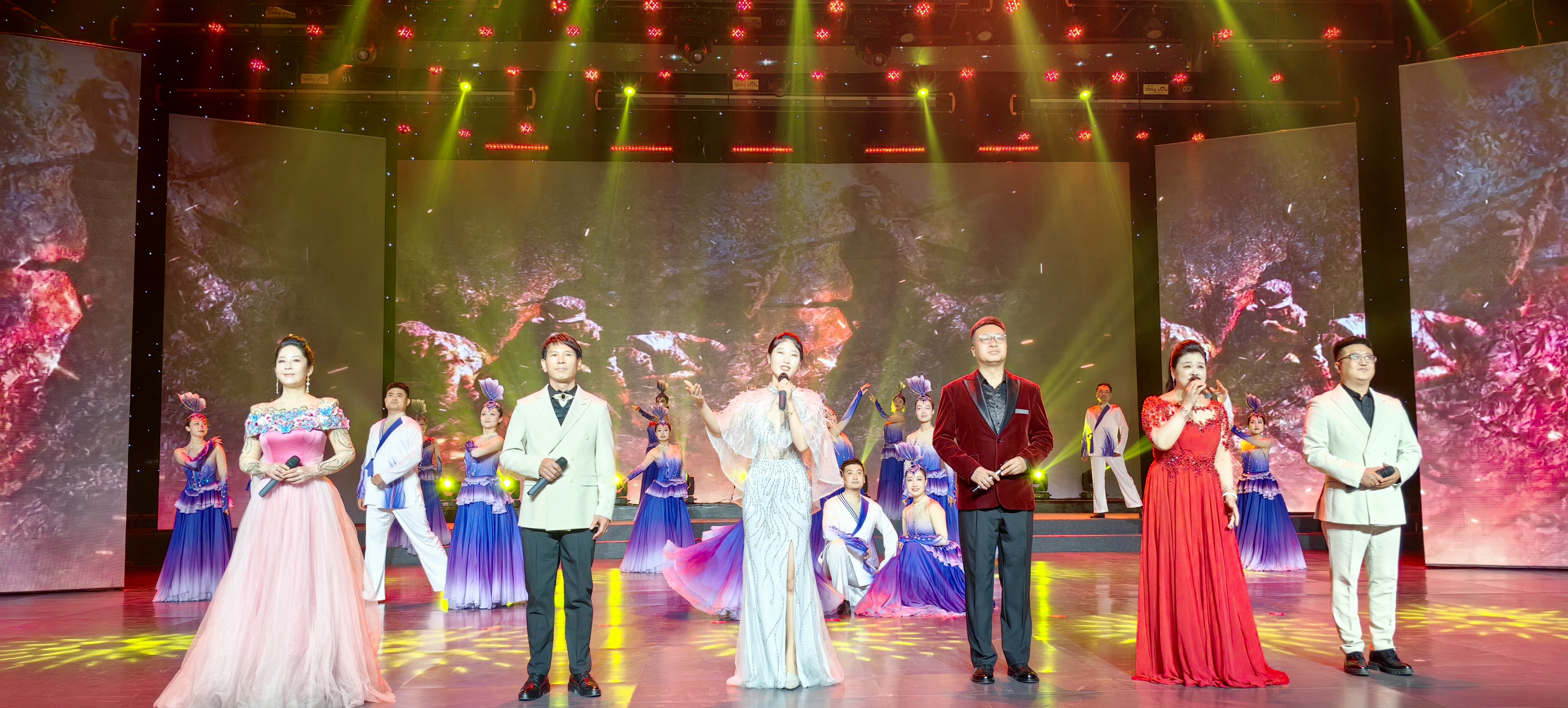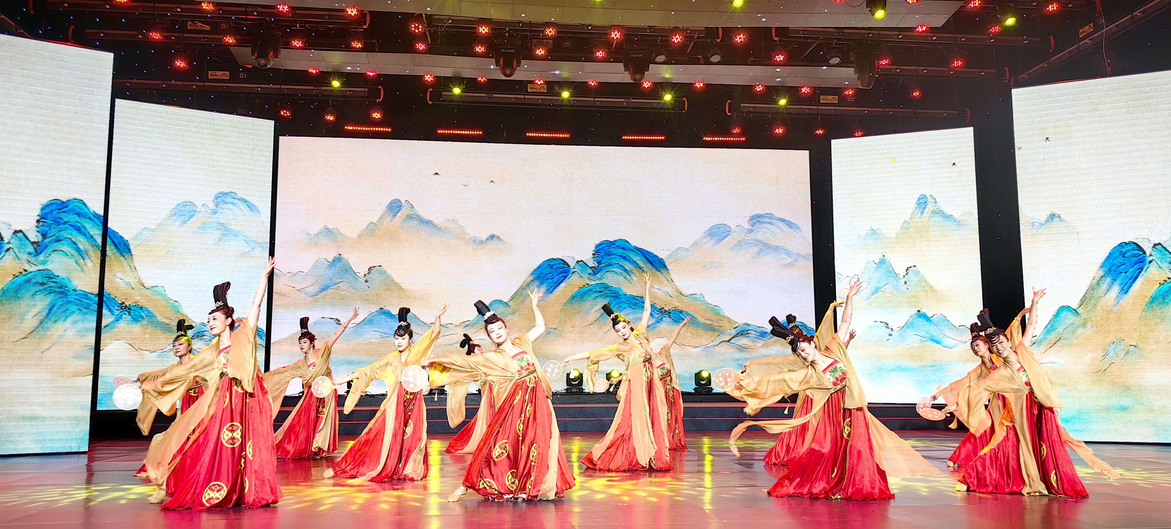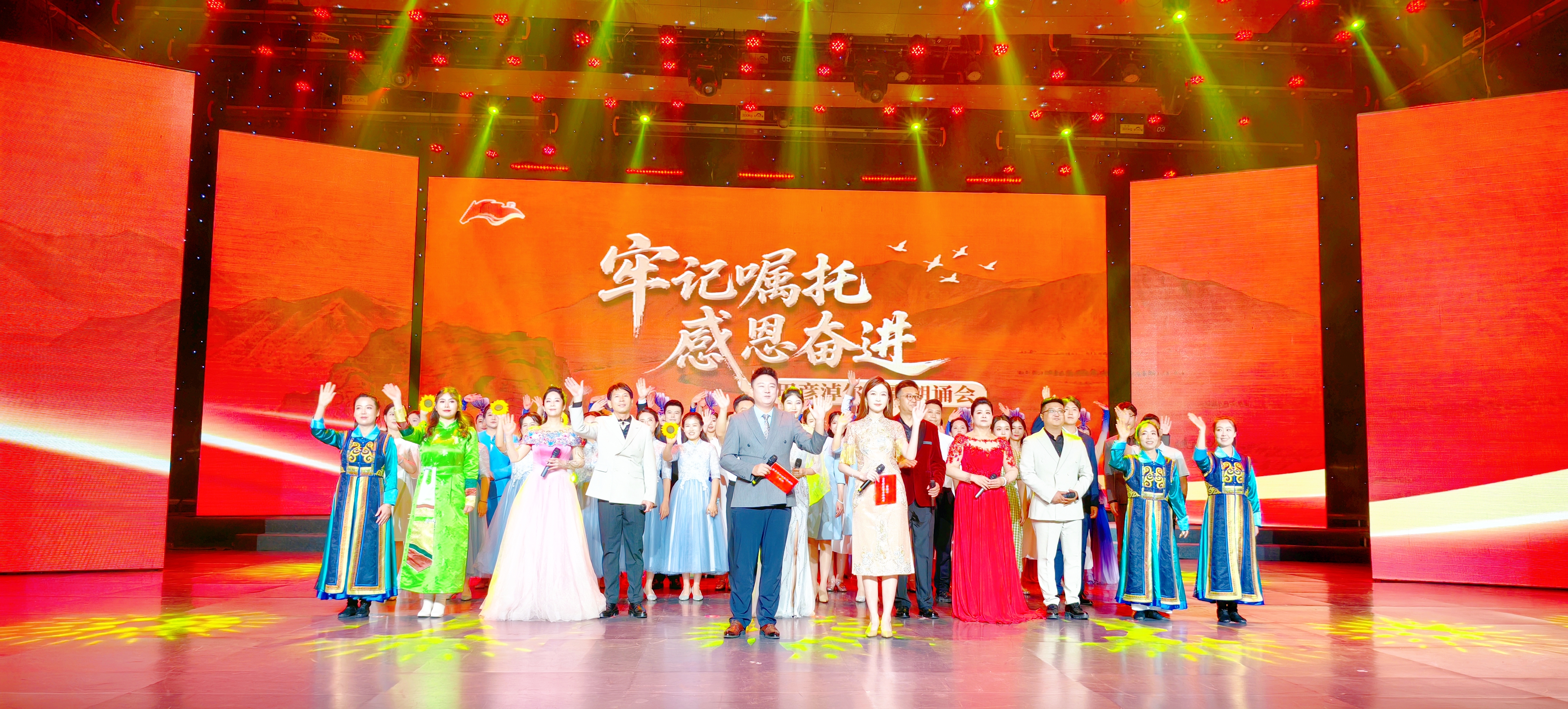 为了让整场朗诵会更加丰富多彩,精心编排的文艺节目穿插其中。群舞《锦绣国风》以灵动优美的舞姿,瞬间点燃了现场气氛,拉开了朗诵会的华丽序幕;独唱《步履》用激昂的歌声唱出了逐梦路上的坚定步伐;双人舞《世界赠予我的》通过舞者的精彩演绎,诠释了奋斗者的心灵感悟;歌伴舞《远征》以大气磅礴的词曲和编舞,将演出推向高潮,象征着巴彦淖尔正以昂扬的姿态迈向新的征程。