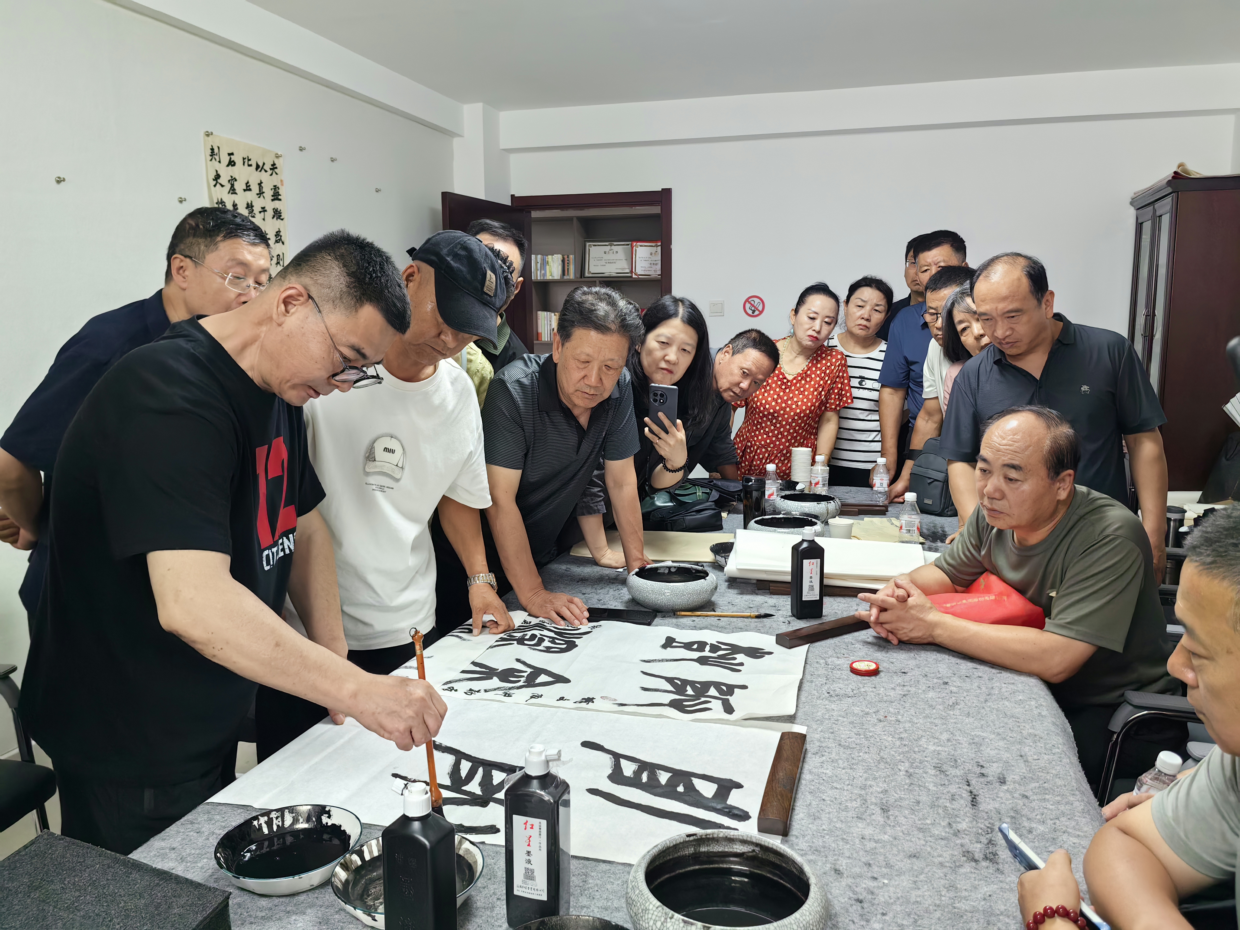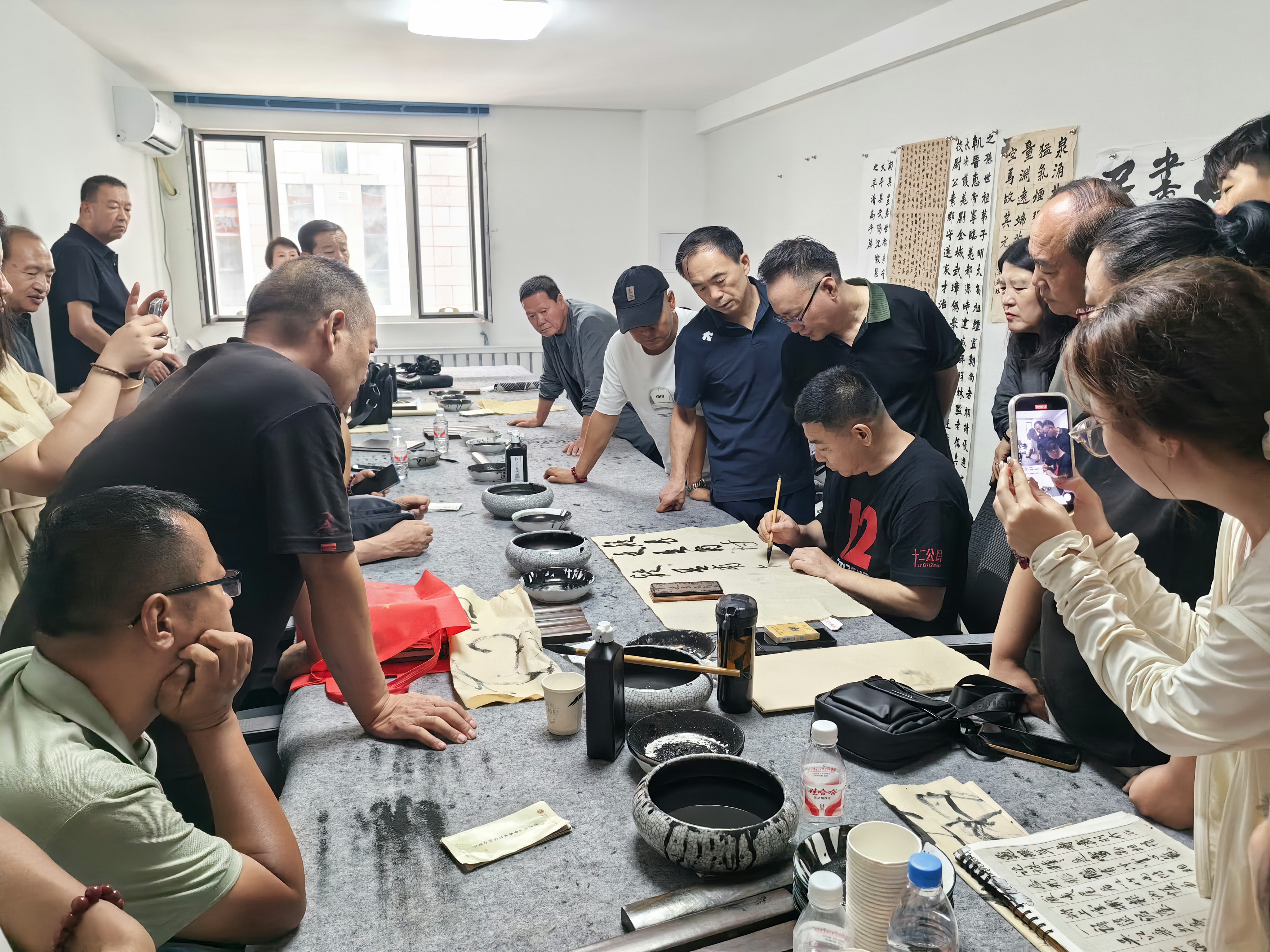 下午,在文艺创作室进行现场创作指导,书法爱好者们踊跃参与,纷纷拿出自己的习作请教。耿泽峰老师逐一耐心点评,针对每个人创作中存在的困难与问题提出专业建议,并亲自示范,使学员在沉浸式交流互动中拓宽了创作思路。