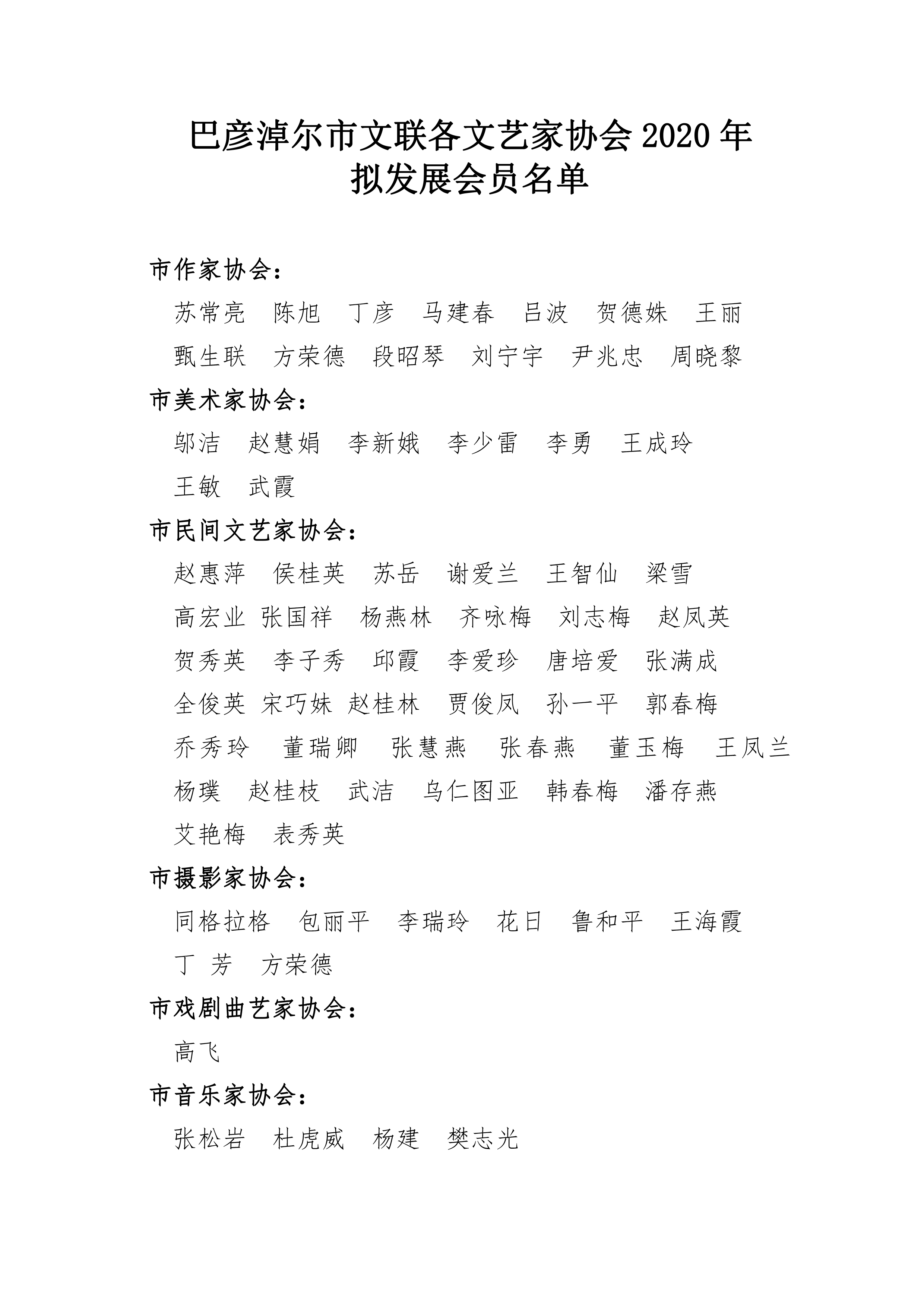 附:巴彦淖尔市文联各文艺家协会2020年拟发展会员名单
