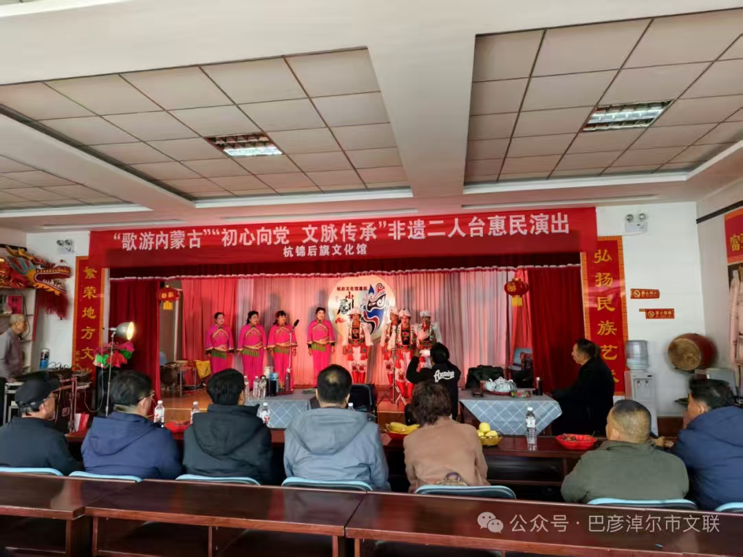 来到杭锦后旗红星传统剧社,调研组观看了非遗二人台惠民演出。欢快的曲调、生动的演绎,展现了河套地区独特的文化风情。红星传统剧社多年来始终坚持深入基层演出,让传统艺术回归民间、服务群众。调研组一行还观看了杭锦后旗乌兰牧骑杂技、曲艺等文艺节目,并对当地曲艺发展情况做了深入了解。