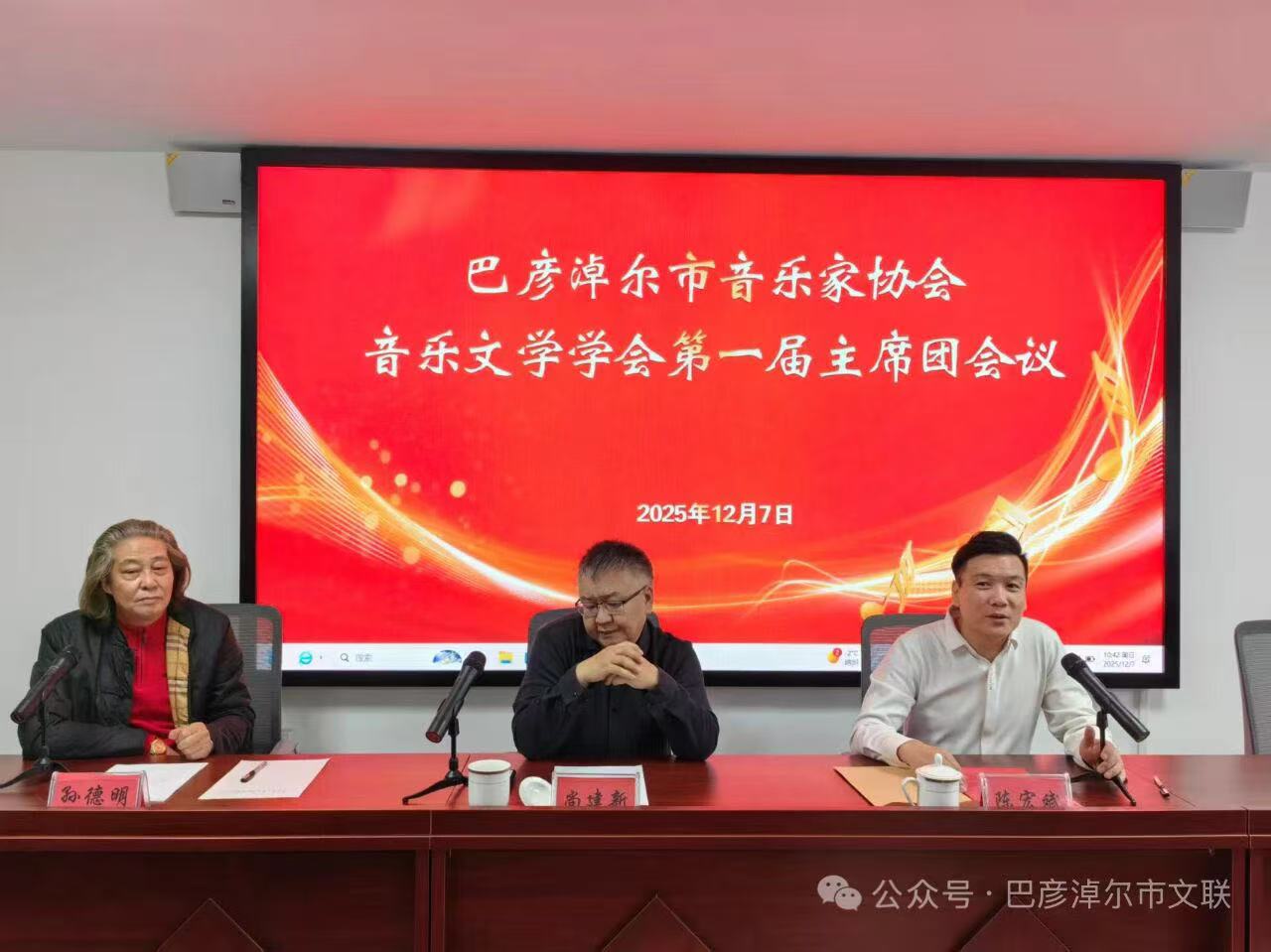 12月7日,市音乐家协会音乐文学学会召开第一次主席团会议。市文联二级调研员尚建新,市音乐家协会主席陈宏斌,市音乐家协会音乐文学学会会长孙德明以及市音协音乐文学学会主席团成员参加会议。