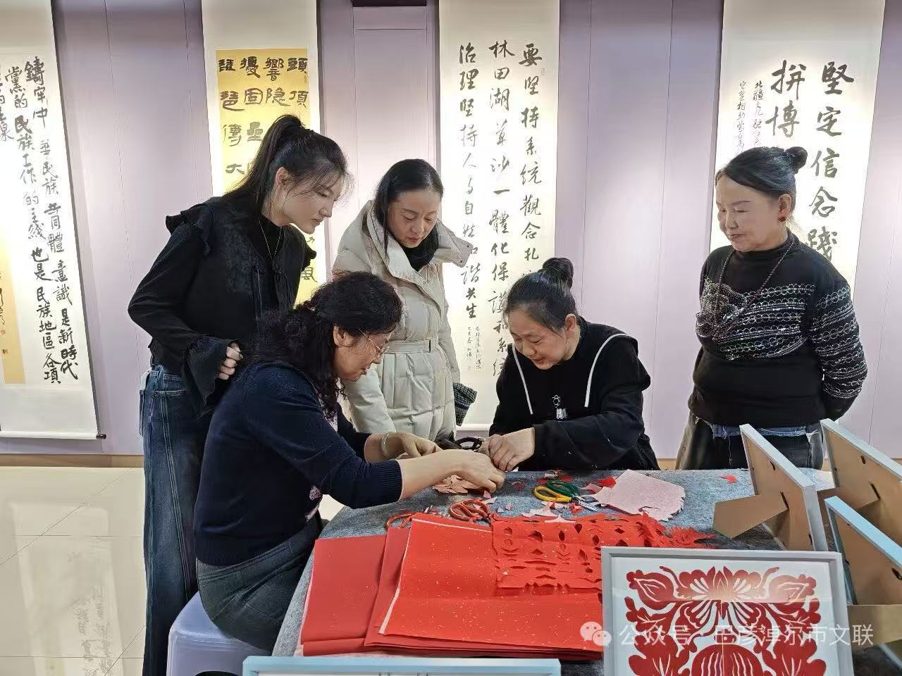 现场书法笔会与非遗剪纸环节成为活动亮点。书法爱好者们挥毫泼墨,寓意美好的词句跃然纸上,笔力遒劲间尽显对新年的期许;非遗剪纸传承人现场示范指导,红纸在指尖翻飞成吉祥纹样,让大家直观感受传统技艺的灵动魅力。交流互动中,墨香与剪纸的巧思交融,营造出浓厚的文化氛围。