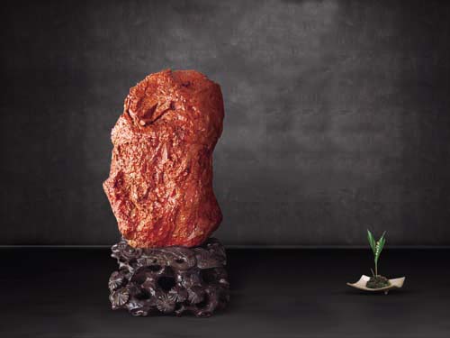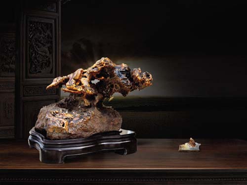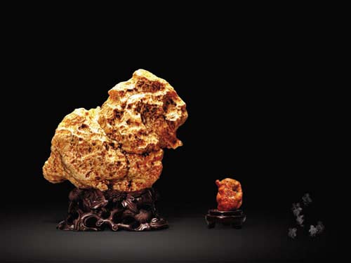 藏家玩石,并不仅仅只在手中把玩。小石头与大石头各有千秋,同样都可以玩出真性情、大境界。譬如,米芾拜石,玩的就是摆在庭院里的一块偌石的太湖石;而苏东坡的爱石却是二百九十八枚“大者兼寸,小者为枣、粟、菱、茨”的粒粒精品。